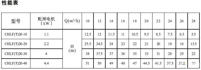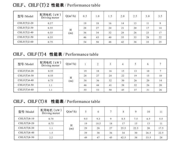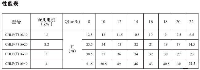 CHLF,CHLF(T)輕型段式多級離心泵(性能參數)